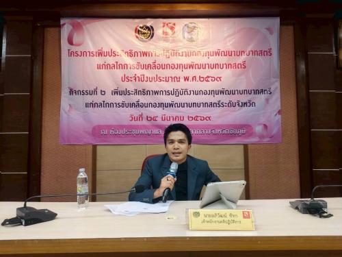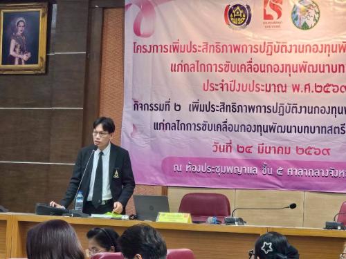 -บรรยายพิเศษหัวข้อ "แนวทางการดำเนินงานกองทุนพัฒนาบทบาทสตรี" โดยนายชำนาญ สมบูรณ์ พัฒนาการจังหวัดชัยภูมิ